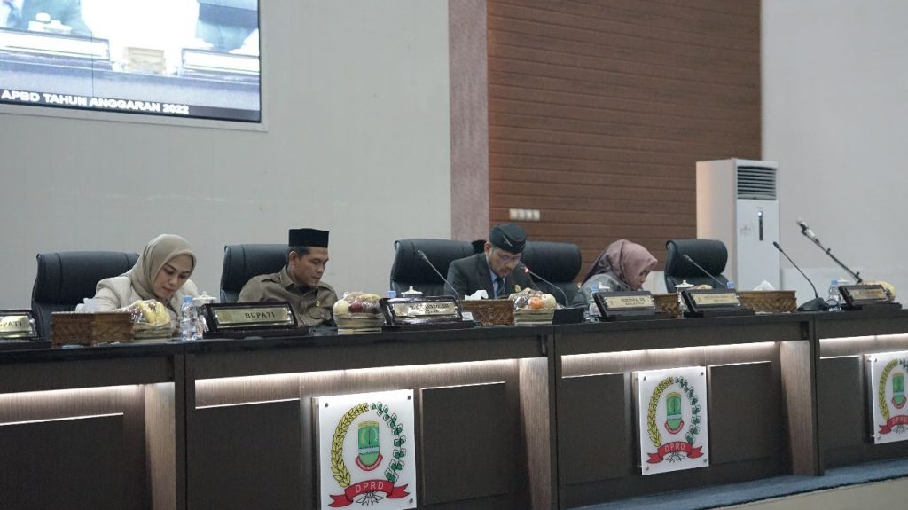 Dalam rangkaian rapat tersebut hadirin telah mendengarkan bersama laporan dari Badan Anggaran Pembahasan Raperda tentang Pertanggungjawaban Pelaksanaan APBD TA 2022, yang dilanjutkan dengan menyimak Pandangan akhir dari Fraksi – fraksi.