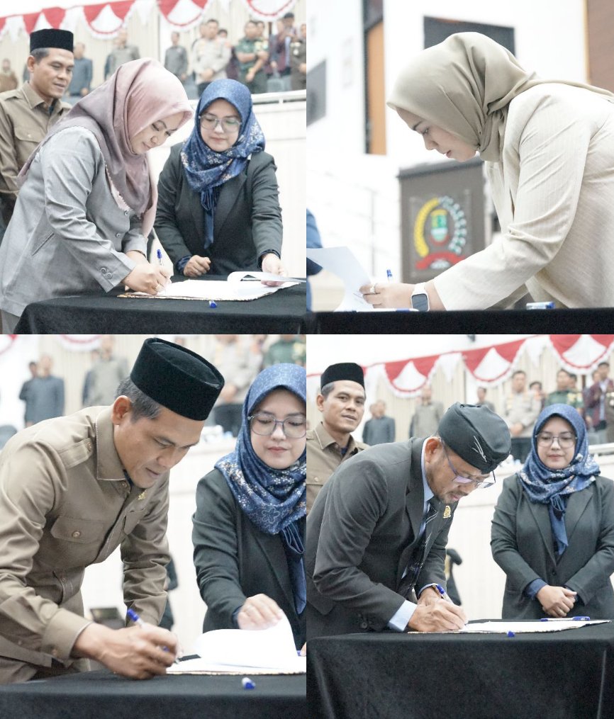 Setelahnya dibacakan rancangan Keputusan DPRD, kemudian para pihak membuhukan tanda tanganan pada lembaran berita acara persetujuan bersama diantaranya Kepala Daerah dan pihak DPRD Kabupaten Karawang tentang Pertanggungjawaban Pelaksanaan APBD TA 2022.